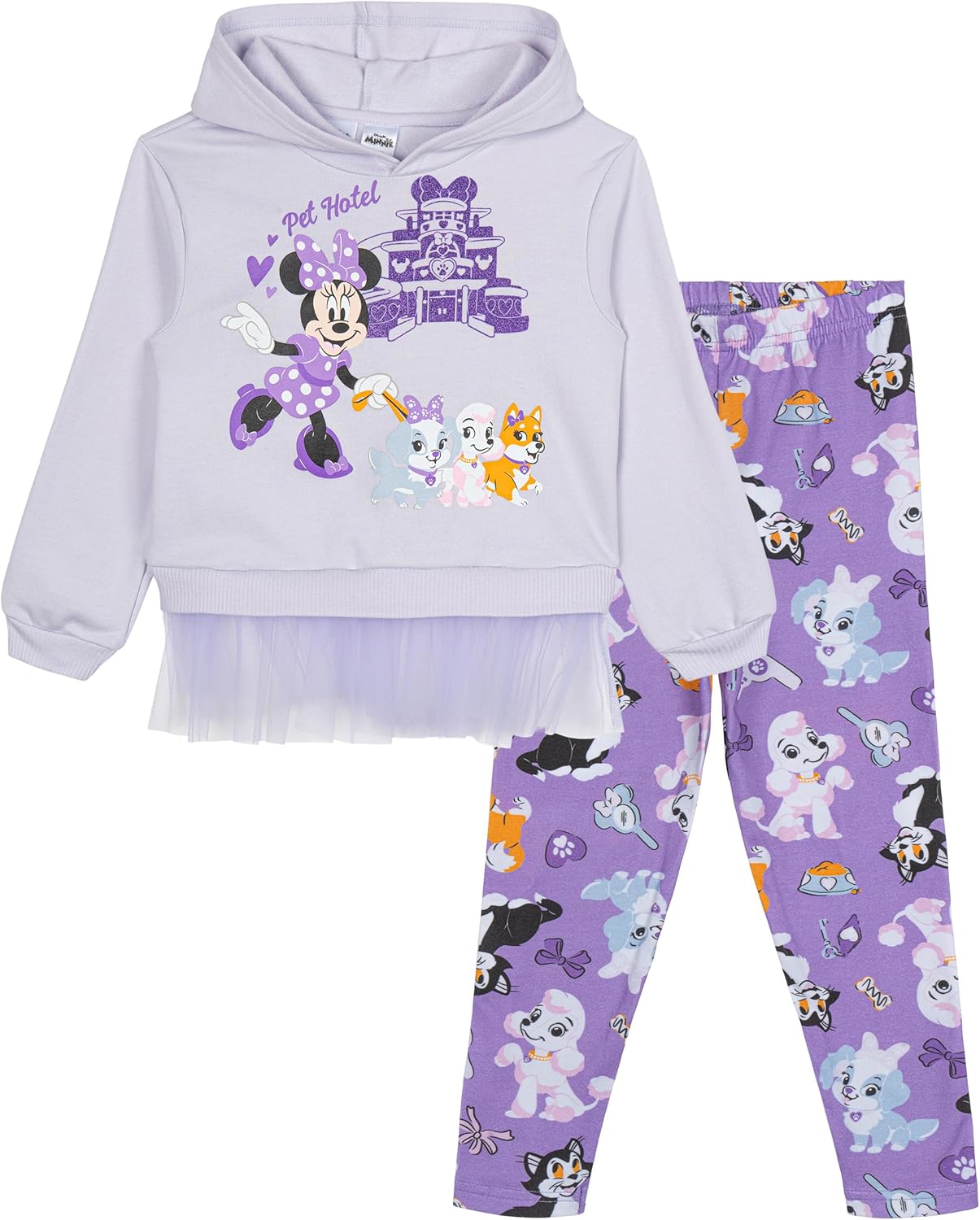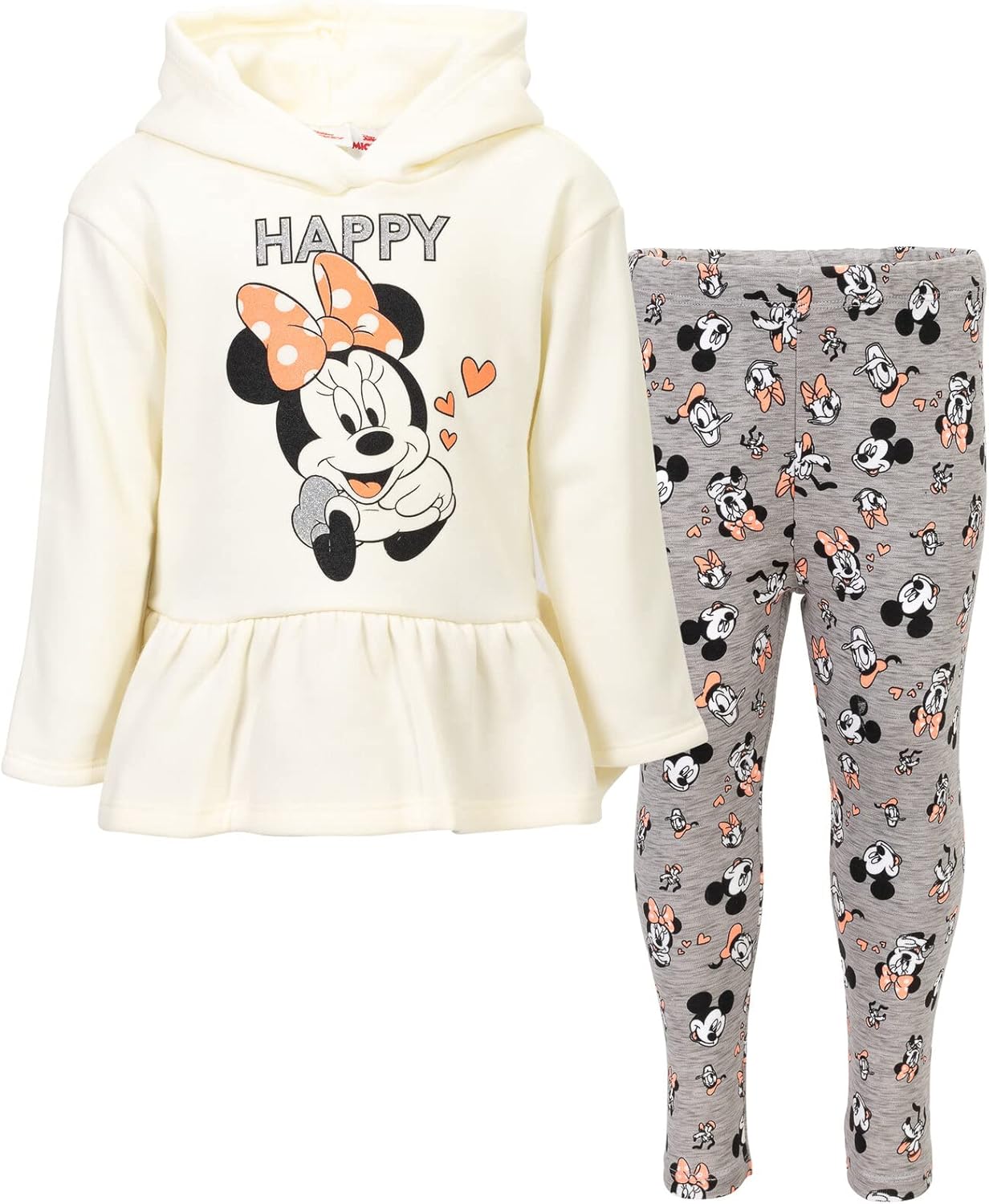 Disney Minnie Mouse Fleece Pullover Crossover Hoodie and Leggings Outfit Set Infant to Big Kid Sizes (12 Months – 14-16)